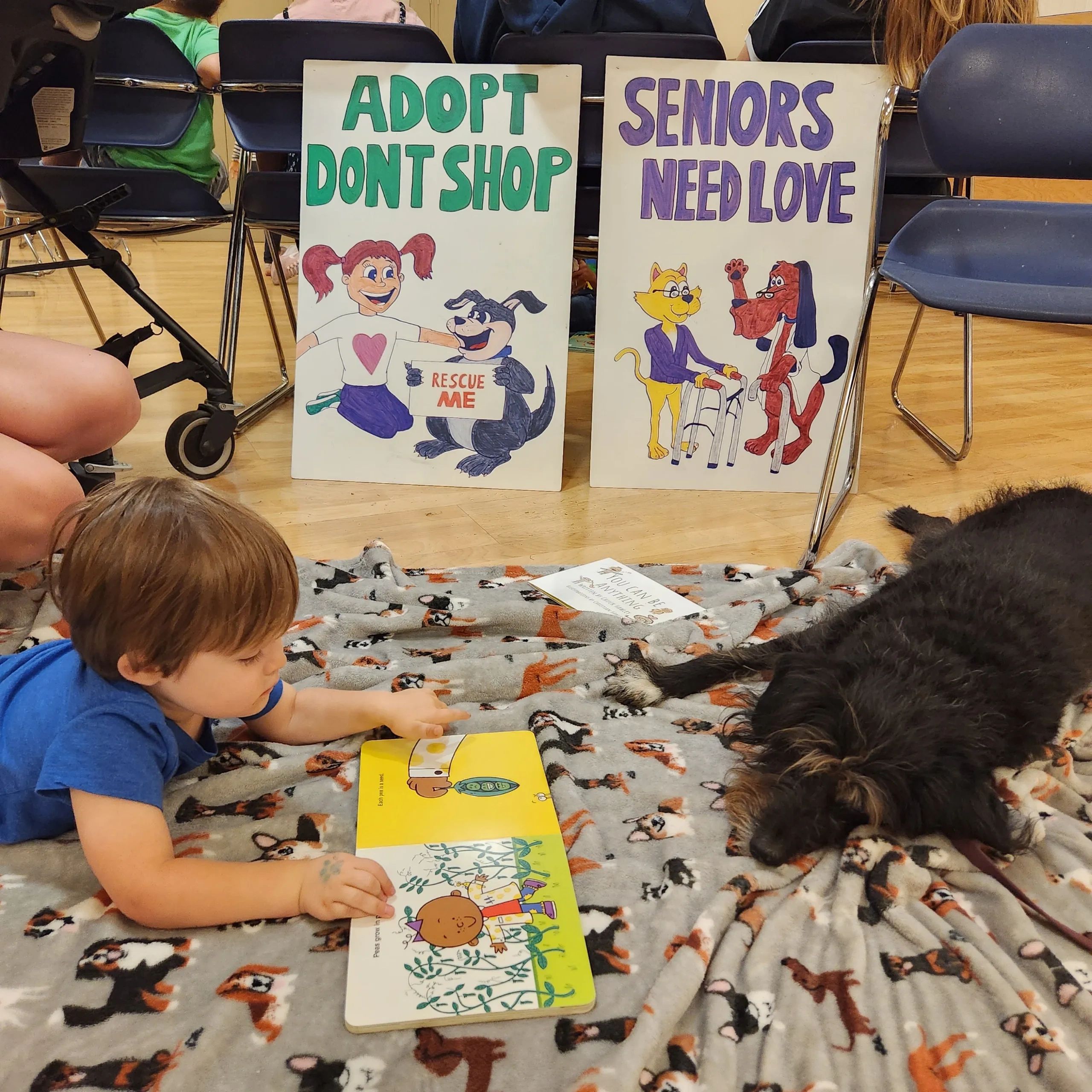 At Reading to the Rescue, our volunteer dogs play a vital role. They help children build confidence, literacy skills, and compassion — while also helping families see rescue animals in a whole new light.